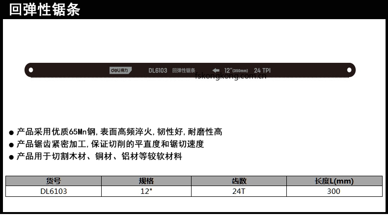 DELI/得力 DL6103 65Mn手工钢锯条12寸24T(黑)(100根)