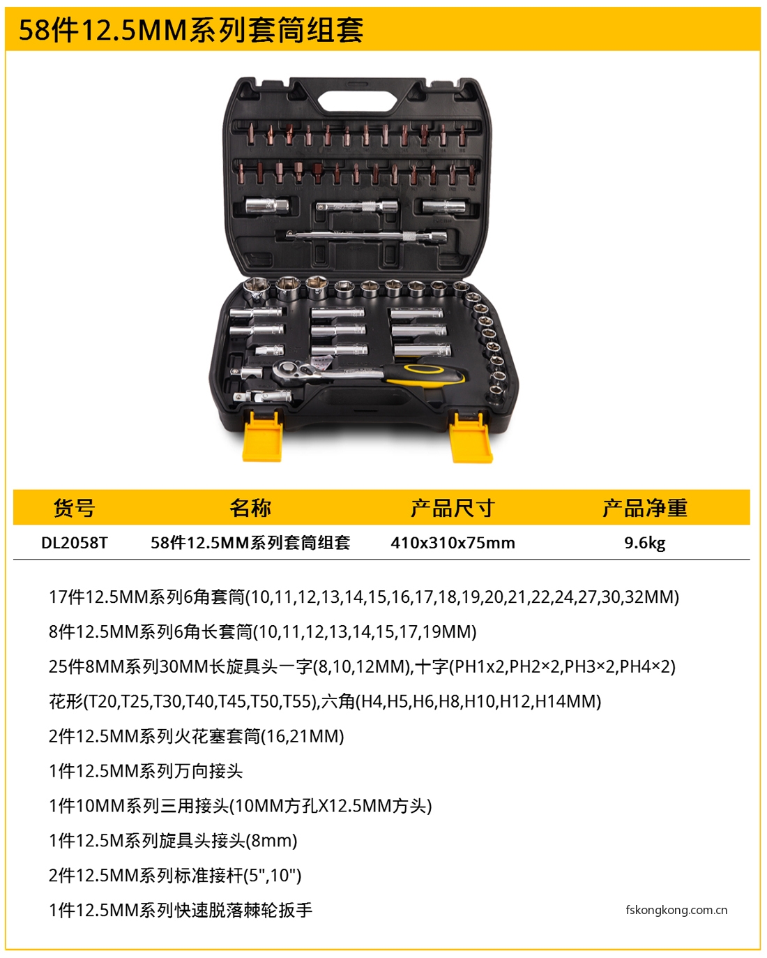 DELI/得力 DL2058T 58件12.5mm系列套筒组套(黑)(套)