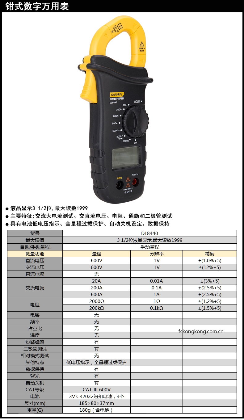 DELI/得力 DL8440 钳形万用表1999位(黄)(台)