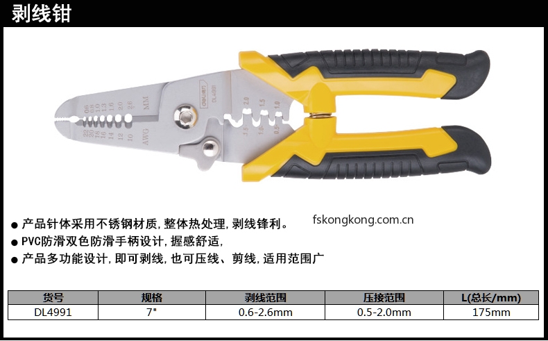 ③产品多功能设计,即可剥线,也可压线、剪线,适用范围广