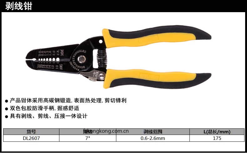 DELI/得力 DL2607 削皮剥线钳0.6-2.6mm(黑)(把)