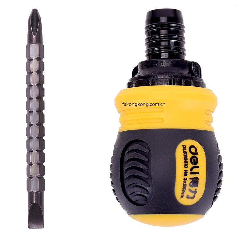 DELI/得力 DL626010 两用棘轮螺丝批6/PH2x80mm铬钒(黄)(把)
