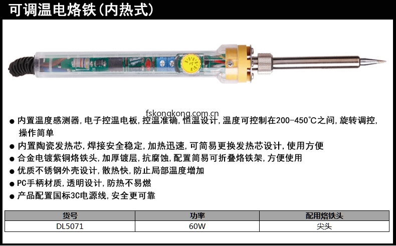 ②内置陶瓷发热芯,焊接安全稳定,加热迅速,可简易更换发热芯设计,使用方便