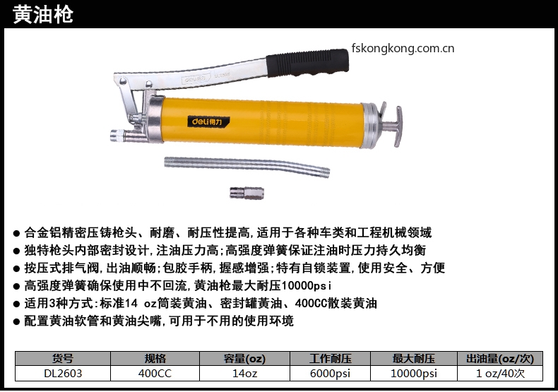 ④高强度弹簧确保使用中不回流,黄油枪最大耐压10000psi