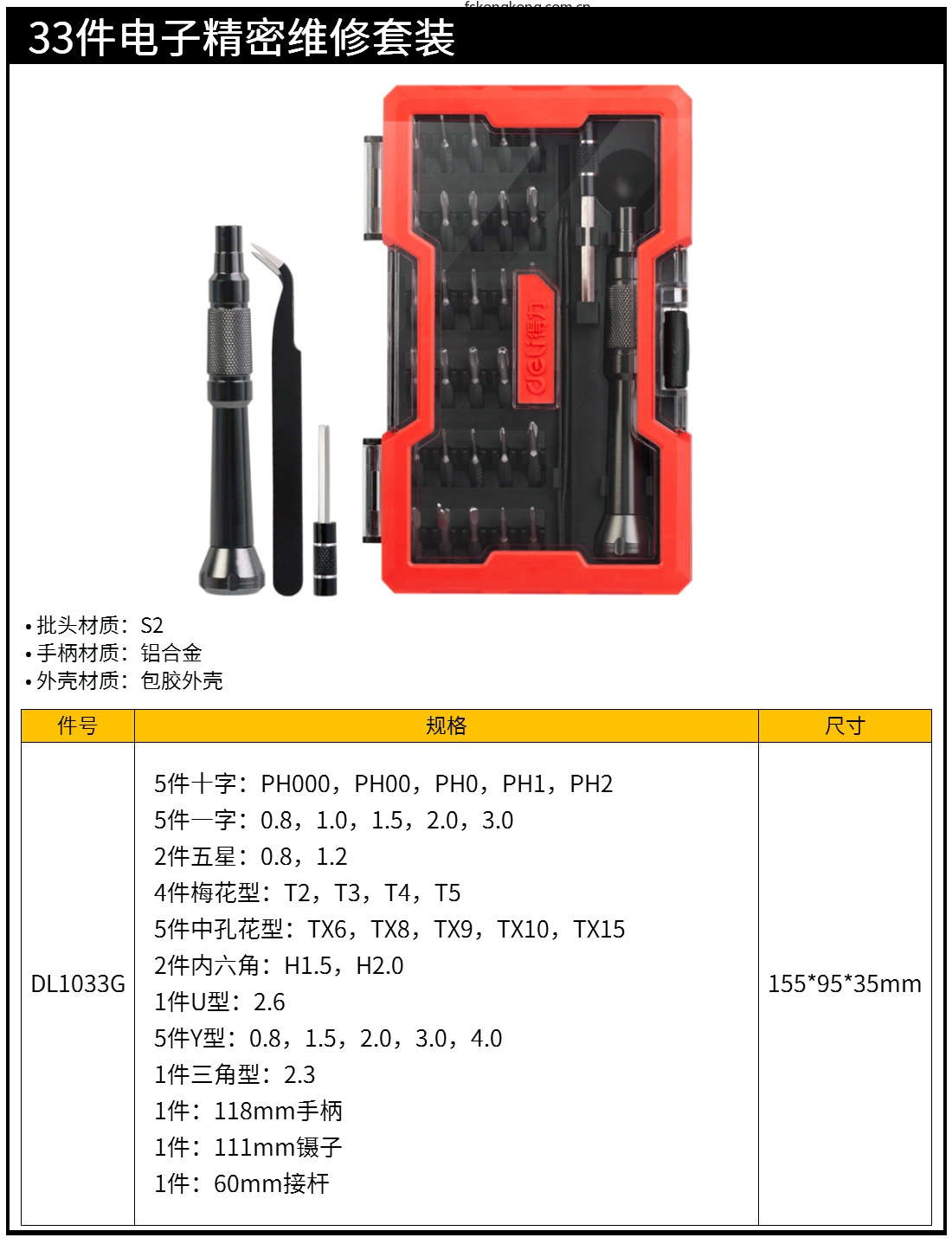 DELI/得力 DL1033G 精密螺丝刀33件套金属杆S2批头(红)(套)