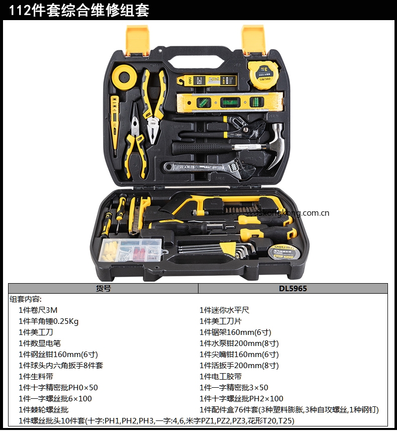 1件配件盒76件套(3种塑料膨胀,3种自攻螺丝,1种钢钉)