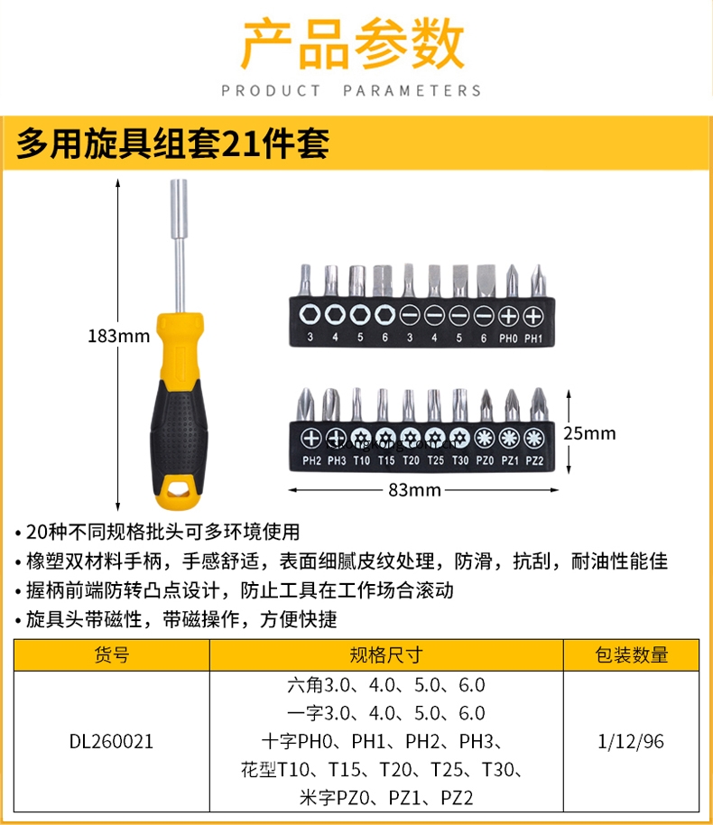 DELI/得力 DL260021 多用螺丝批21件套铬钒钢(黄)(套)