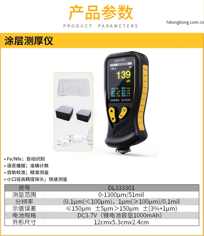 DELI/得力 DL333301 涂层测厚仪0~1300μm锂电彩屏(黄)(台)