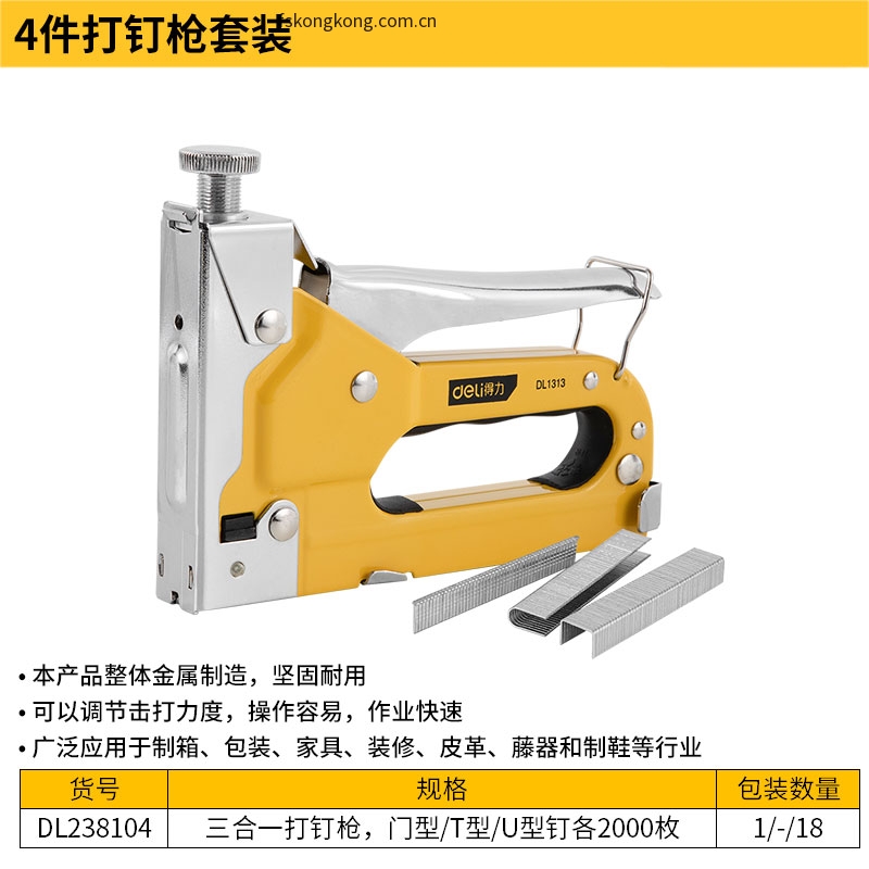 DELI/得力 DL238104 三合一打钉枪套装三款枪钉各2000枚(黄)(套)