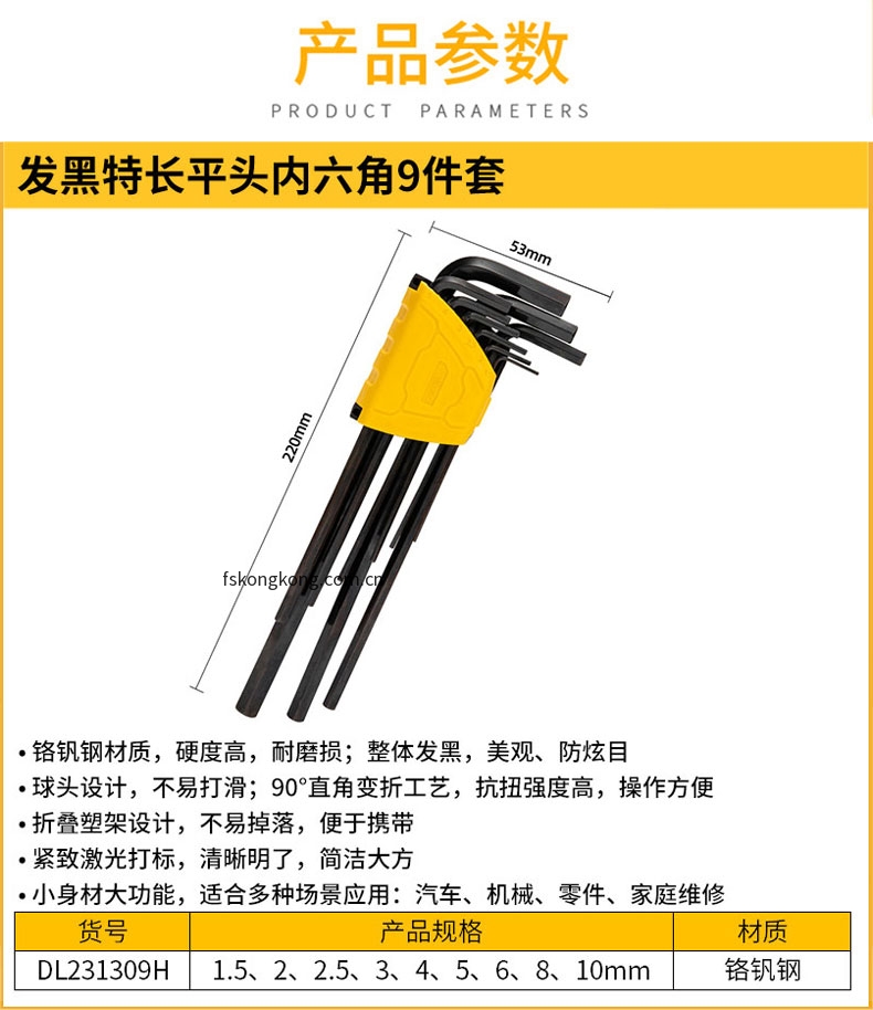 DELI/得力 DL231309H 发黑特长平头内六角组套9件套(黑)(套)