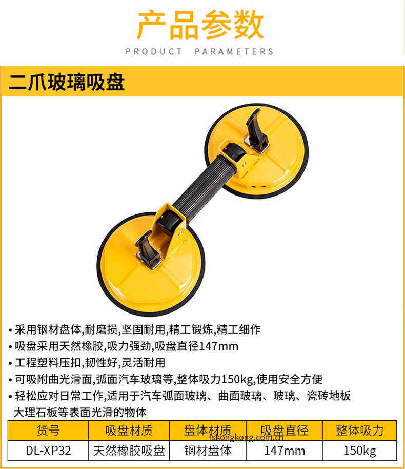 DELI/得力 DL-XP32 玻璃吸盘活动二爪130kg铸铁(黄)(个)