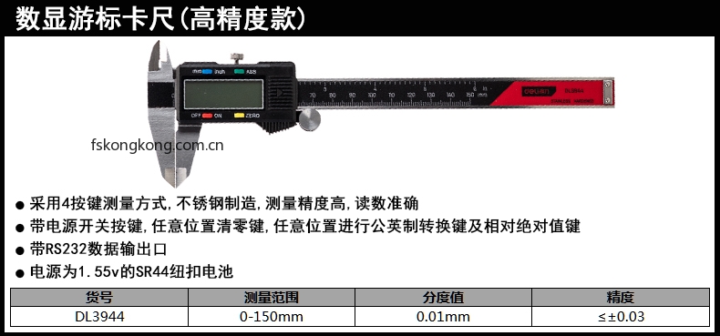 得力 DL3944 数显游标卡尺150mm(高精度款)
