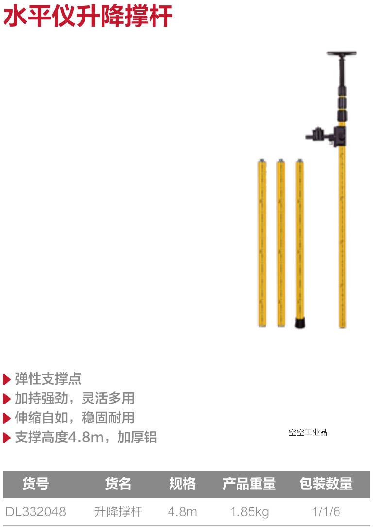 DELI/得力 DL332048 水平仪升降撑杆4.8m(黄)(把)