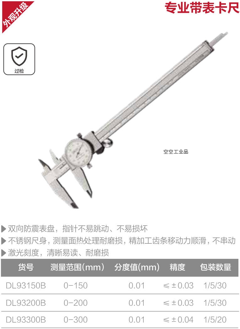 DELI/得力 DL93200B 带表卡尺200mm专业0.01mm(红)(把)【售完取消】